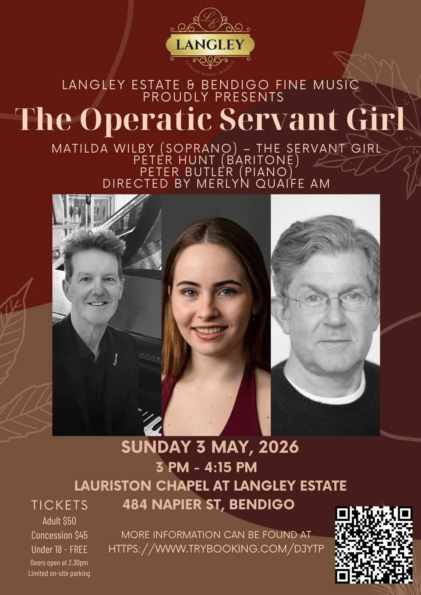Bendigo's (and Australia's!) own 'fearless Soprano' Merlyn Quaife AM returns to Langley for an unforgettable afternoon - this time with Thomas Heywood accompanying on both the magnificent 1875 pipe organ and the beautiful Yamaha C7X grand piano (not at the same time)!